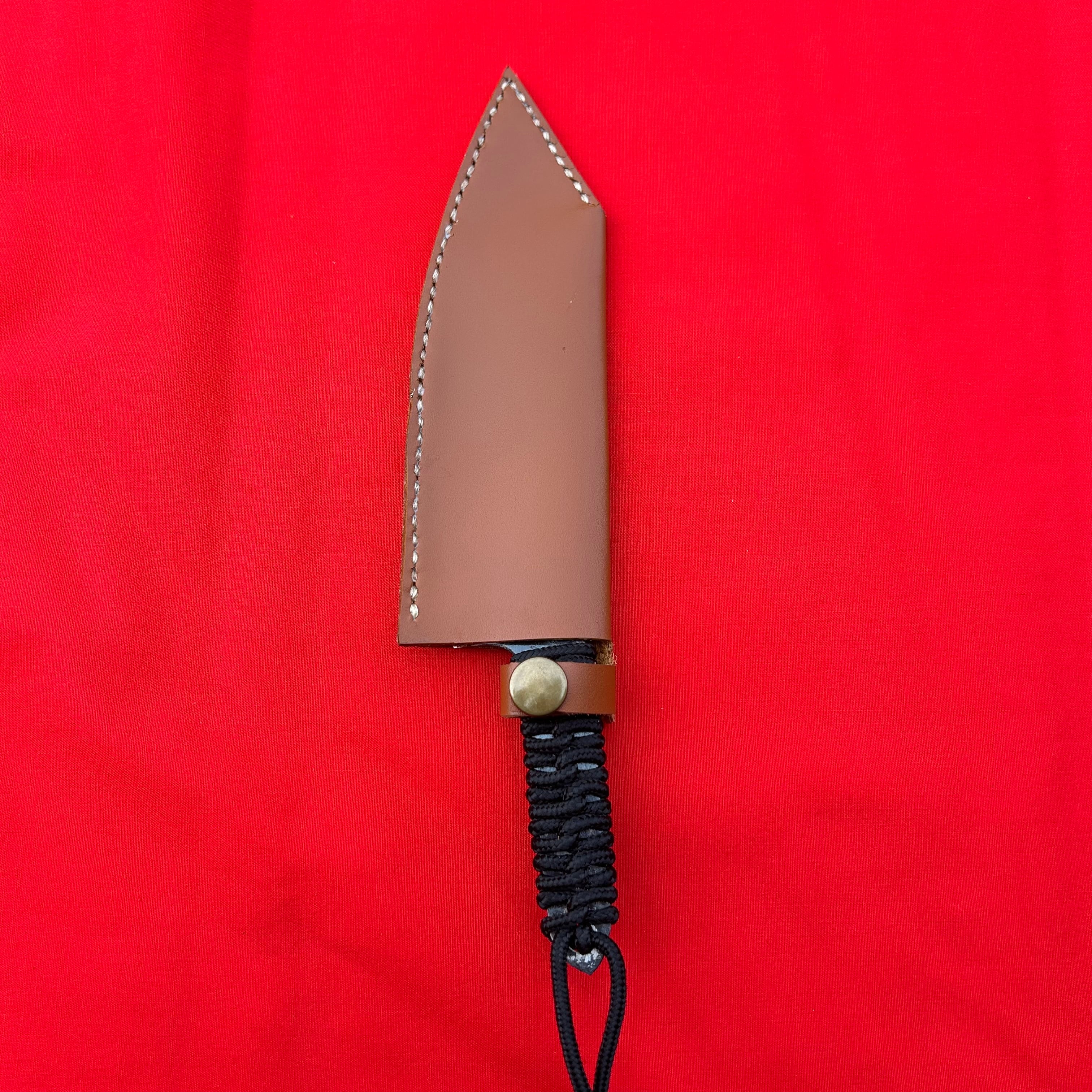 黒打ち仕上げの無骨なデザインと持ち手に巻いたパラコードのデザインの融合。