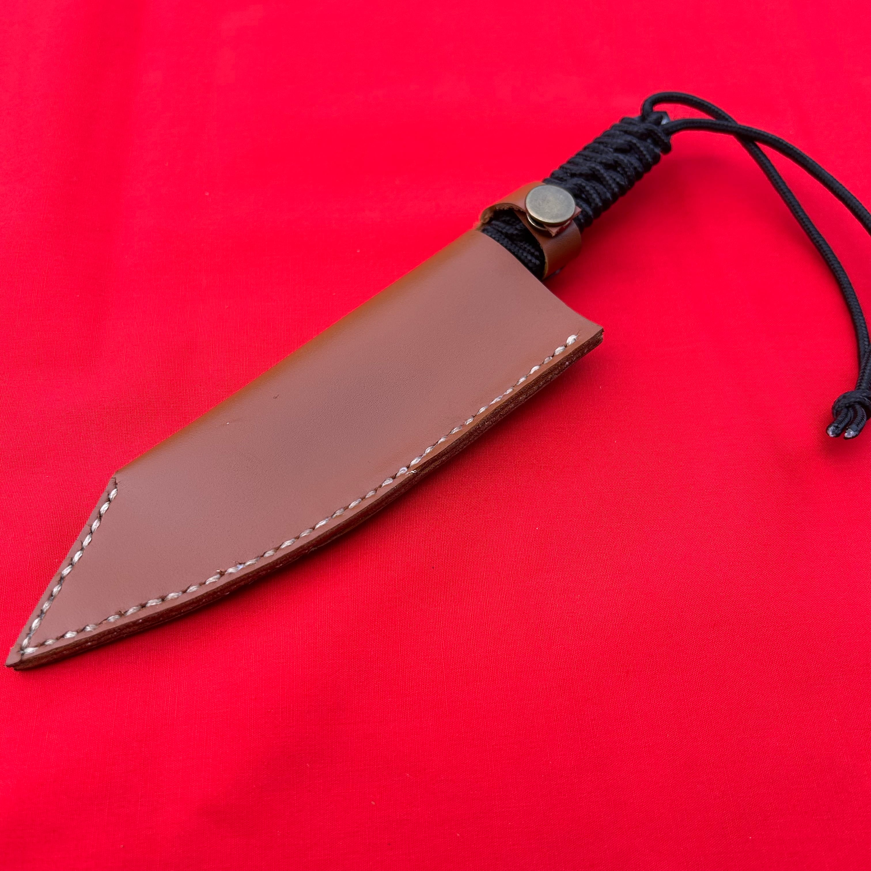 黒打ち仕上げの無骨なデザインと持ち手に巻いたパラコードのデザインの融合。